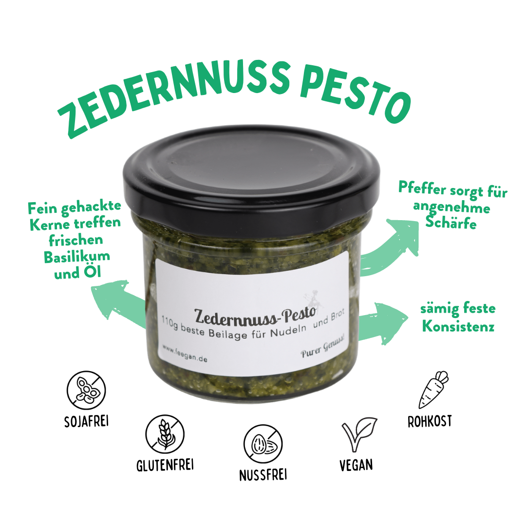 Unser Zedernpesto ist eine köstliche und einzigartige Kreation, die aus hochwertigen, natürlichen Zutaten hergestellt wird.