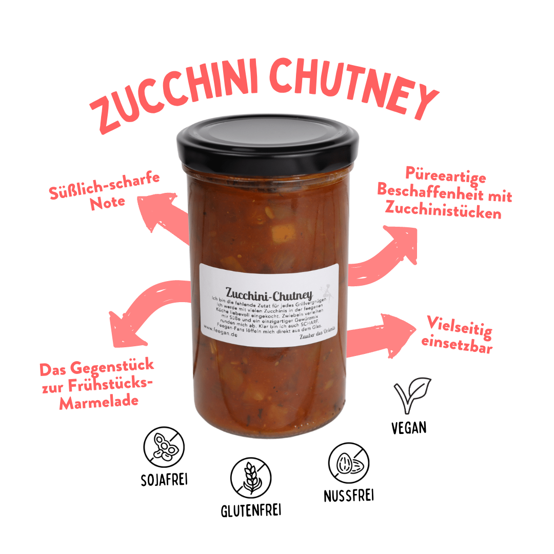 Dieses Zucchini-Chutney ist sehr vielseitig. So passt es sehr gut zu Sellerieschnitzel, als Dip zum deftigen Abendbrot oder ganz klar zu jeder Art von indischen Gerichten.